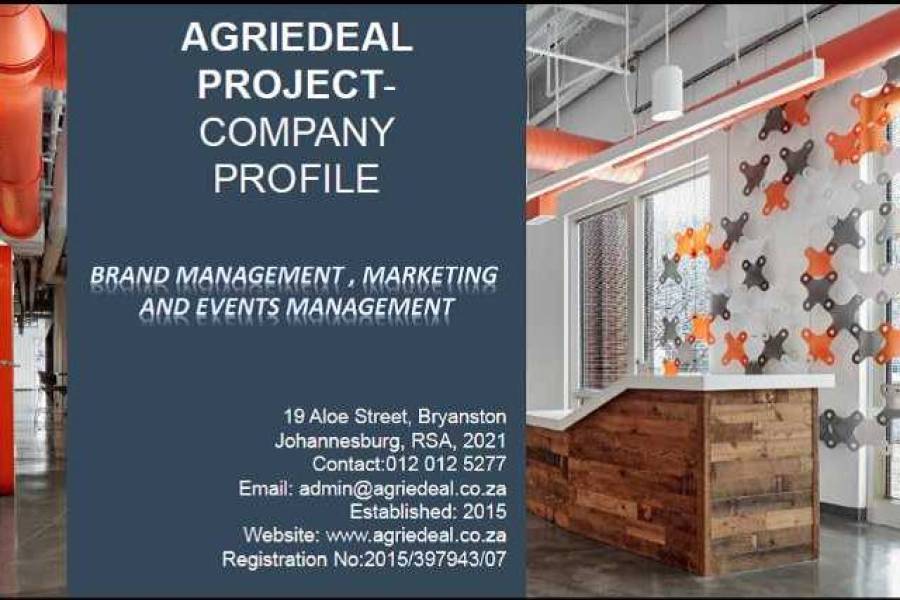 Agriedeal Projects- visit www.agriedeal.co.za for any Skills development Programme or training you wish to attend. <br /><br />Leaders in Corporate Skills Development, Project Management, Facilities Management, Events Management and Sustainable Agriculture.